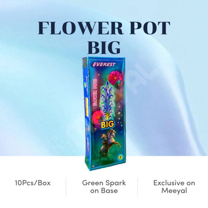 Illuminate your Diwali nights with Flower Pots Big ? 10pcs/Box, one of the most popular crackers among kids and families! Each piece is crafted using a chemical-filled conical tube sealed with a premium quality fuse, ensuring safe and stunning performance.
