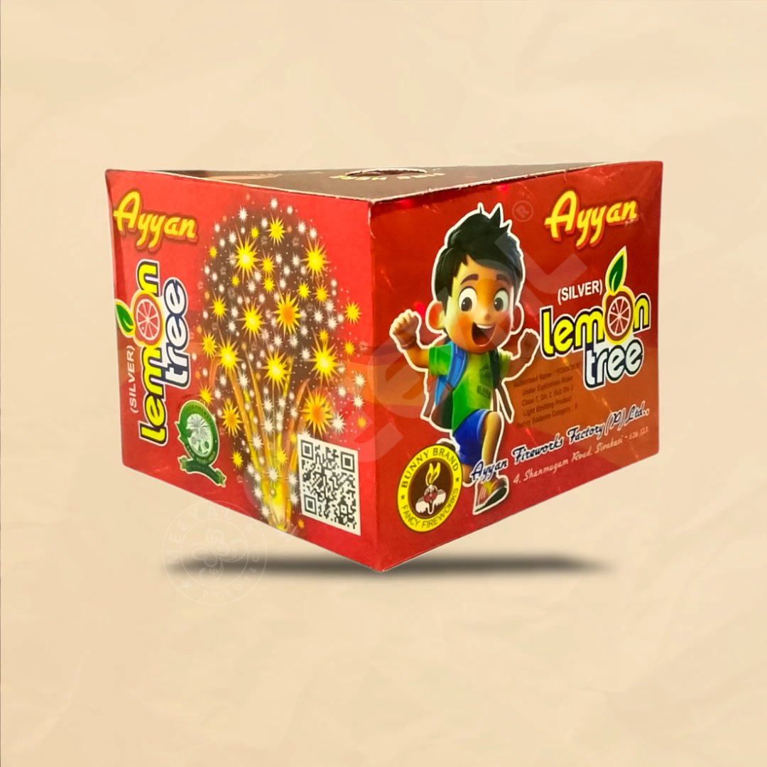 Lemon Tree-Silver by Ayyan Fireworks is a dazzling night-time firework that delivers a double effect performance. It starts with a brilliant silver fountain display, lighting up the night sky with shimmering elegance, and then transitions into an exciting crackling burst, adding sound and thrill to the experience. Crafted with premium quality materials, it ensures good timing, consistency, and safety.