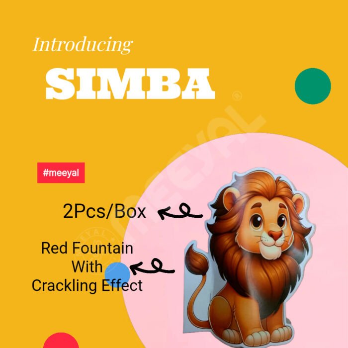 Light up your Diwali night with Simba-2Pc/Box ? an exciting fountain cracker designed especially for kids! This fun-filled cracker produces a vibrant red flame followed by an energetic crackling effect, creating a magical visual and audio experience. Packaged as 2 pieces per box, Simba is made from premium quality materials to ensure safe ignition, smooth performance, and consistent timing throughout the display. Perfect for outdoor use and an ideal addition to your night-time Diwali celebrations.